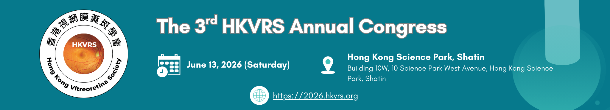 We are delighted to invite you to the 3rd Hong Kong Vitreo-retina Society (HKVRS) Annual Conference, to be held at Science Park, Hong Kong, on Saturday, June 13, 2026.
